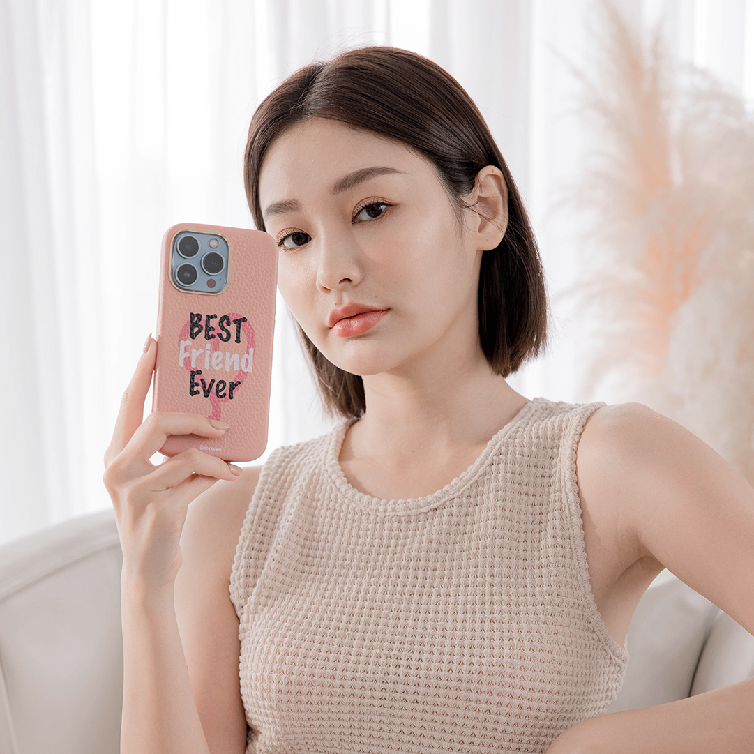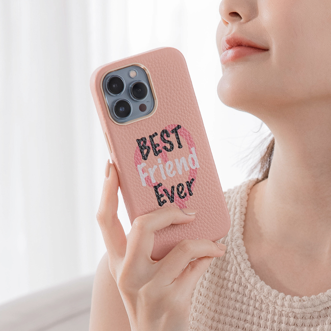 粉刷愛心 蜜荔殼 蜜荔粉皮革殼 - (訂製名字) iPhone客製化手機殼