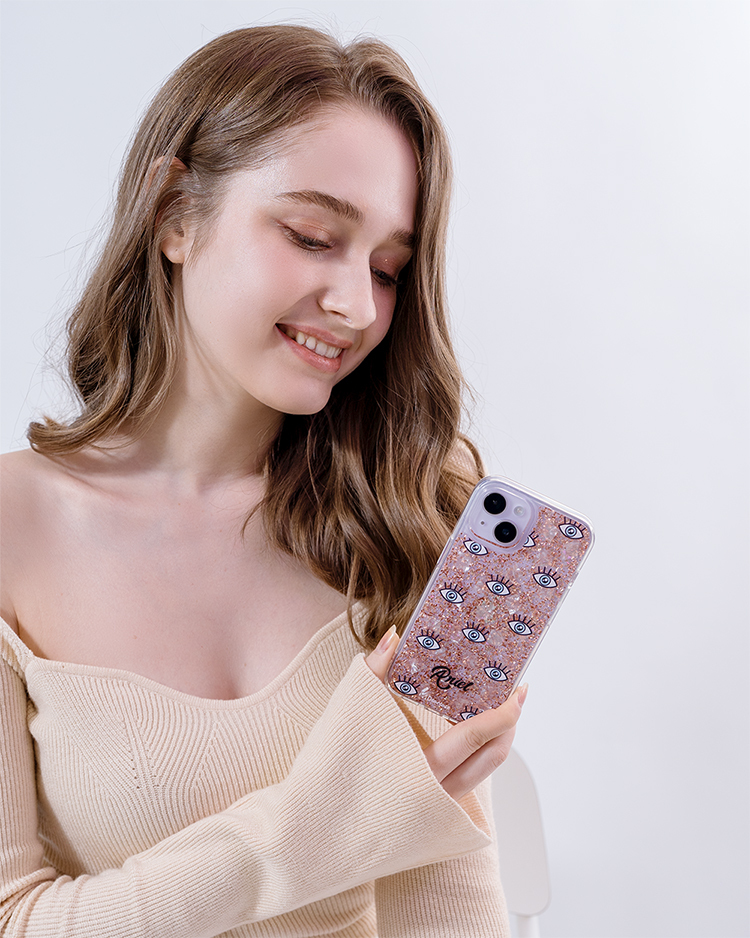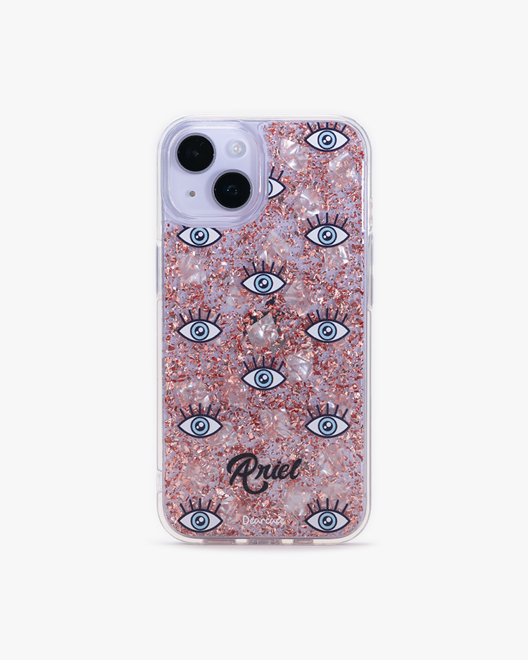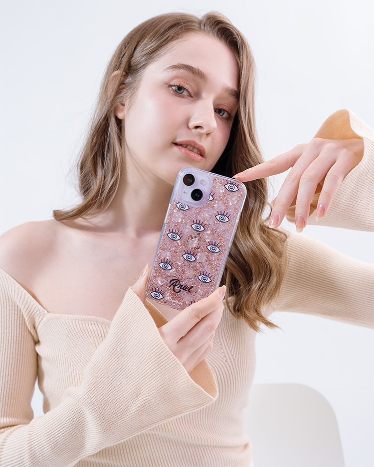 藍色眼睛 玫瑰金貝拉殼 - (訂製名字) iPhone客製化手機殼