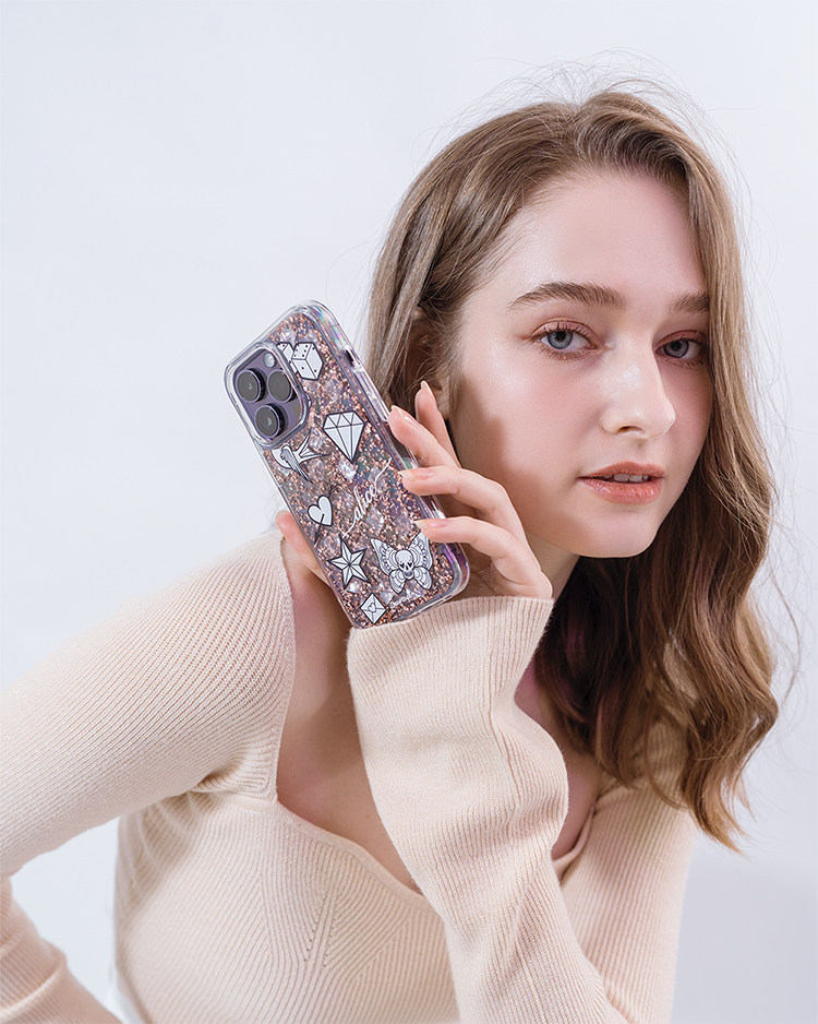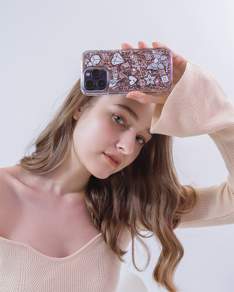 • iPhone13 以上型號為新版一體式玫瑰金貝拉殼