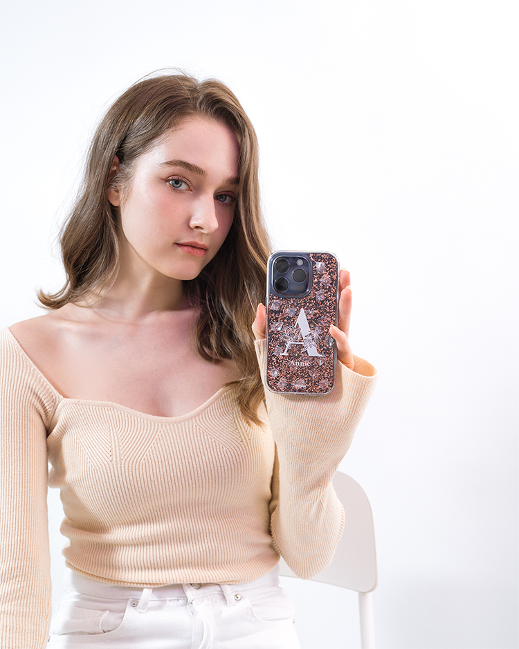 大字陪襯 玫瑰金貝拉殼 - (訂製名字) iPhone客製化手機殼