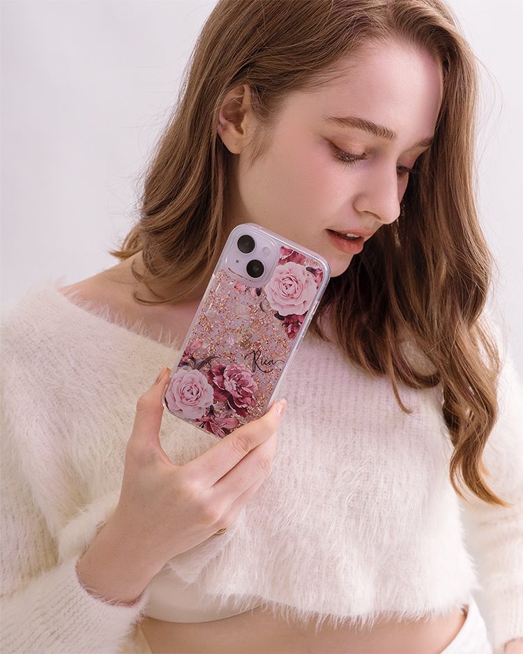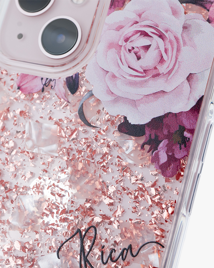玫粉玫瑰 玫瑰金貝拉殼 - (訂製名字) iPhone客製化手機殼