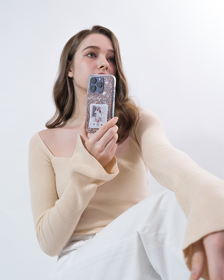 • iPhone13 以上型號為新版一體式玫瑰金貝拉殼
