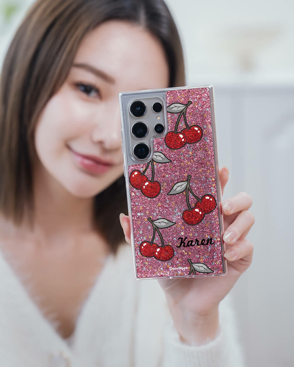 可口櫻桃 粉耀貝拉殼 - (訂製名字) - Samsung 三星 客製化手機殼