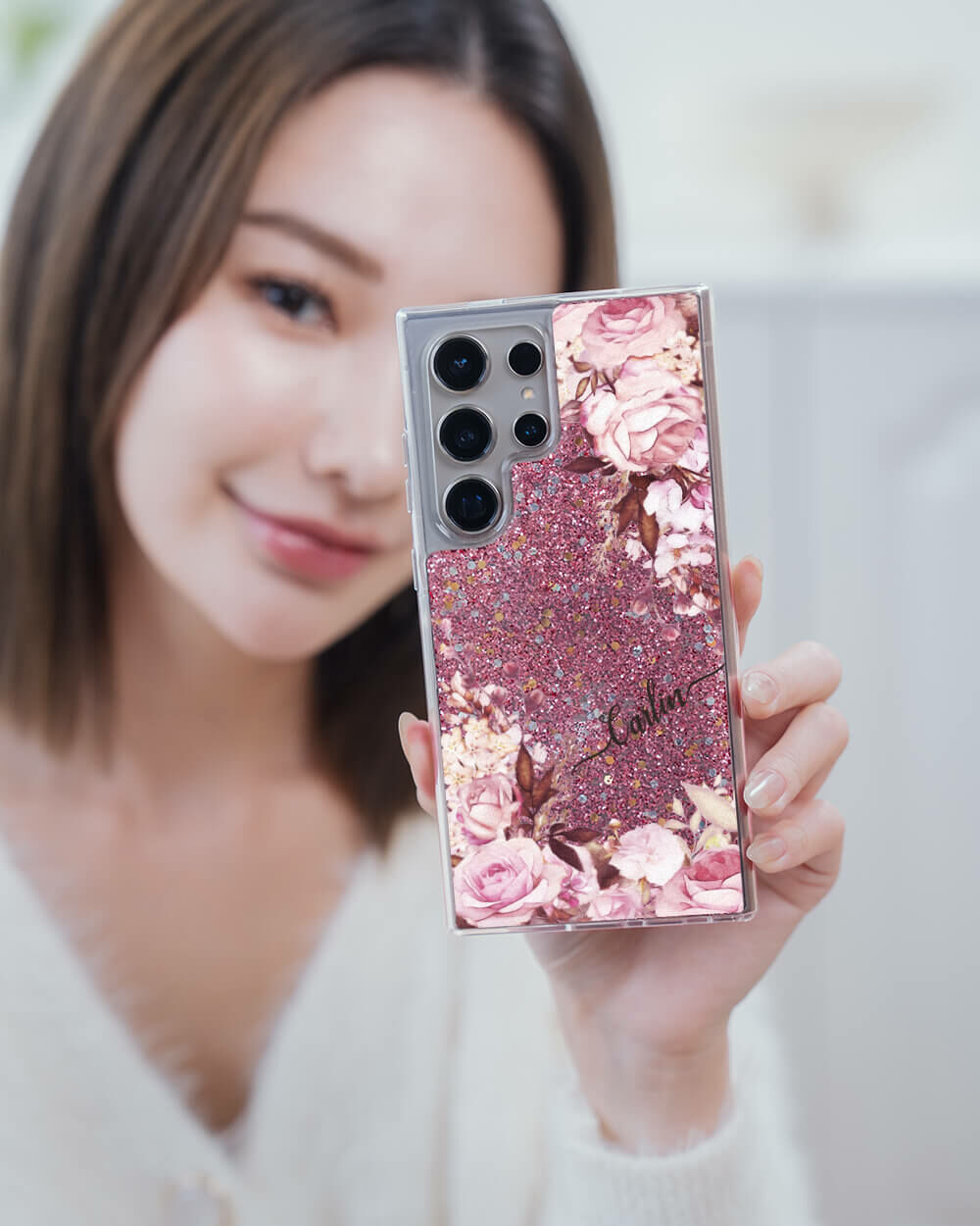 法式玫瑰 粉耀貝拉殼 - (訂製名字) - Samsung 三星 客製化手機殼