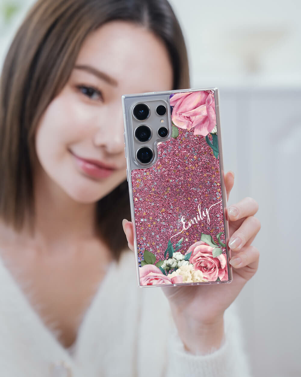 淡粉玫瑰 粉耀貝拉殼 - (訂製名字) - Samsung 三星 客製化手機殼