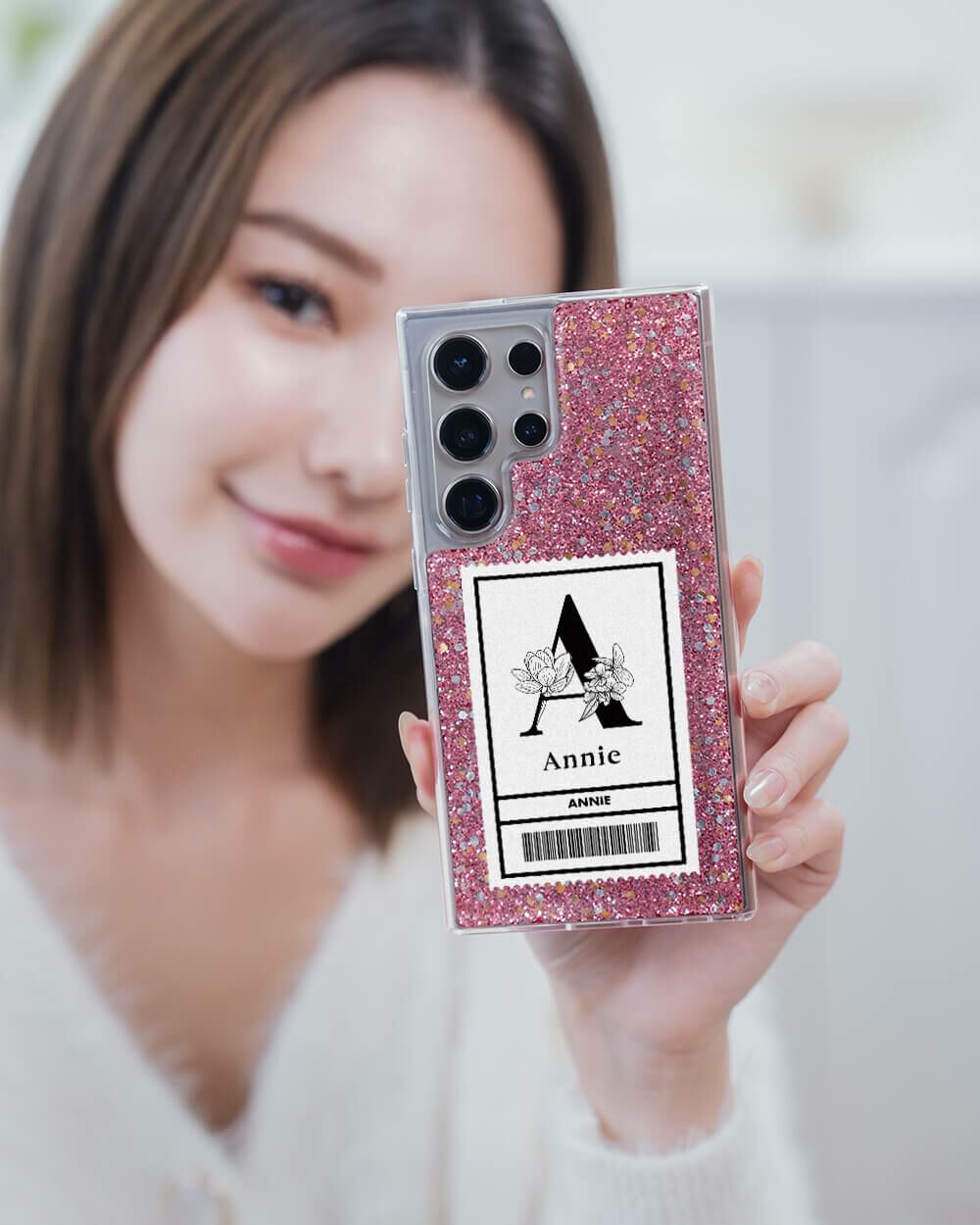 大字條碼 粉耀貝拉殼 - (訂製名字) - Samsung 三星 客製化手機殼