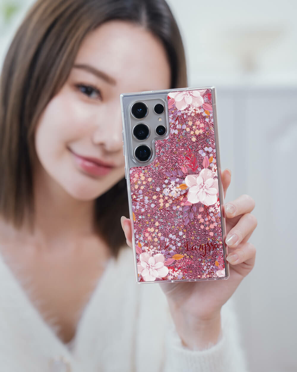 淡粉櫻花 粉耀貝拉殼 - (訂製名字) - Samsung 三星 客製化手機殼