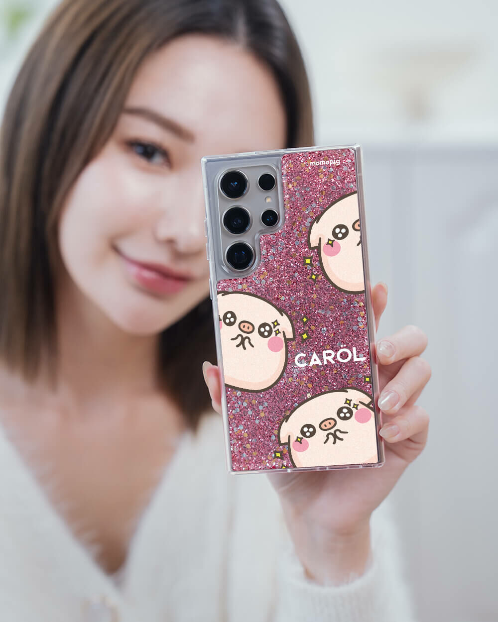 【插畫聯名】圓滾滾萌萌豬 粉耀貝拉殼 - (訂製名字) - Samsung 三星 客製化手機殼