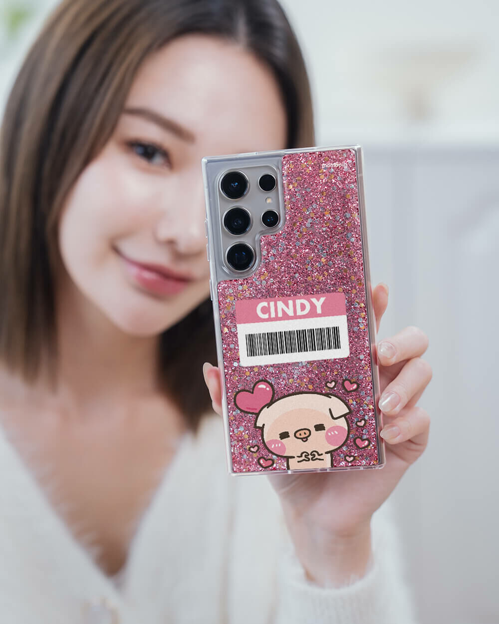 【插畫聯名】幸福肥萌萌豬 粉耀貝拉殼 - (訂製名字) - Samsung 三星 客製化手機殼