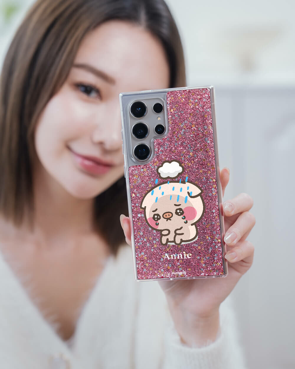 【插畫聯名】厭世萌萌豬 粉耀貝拉殼 - (訂製名字) - Samsung 三星 客製化手機殼