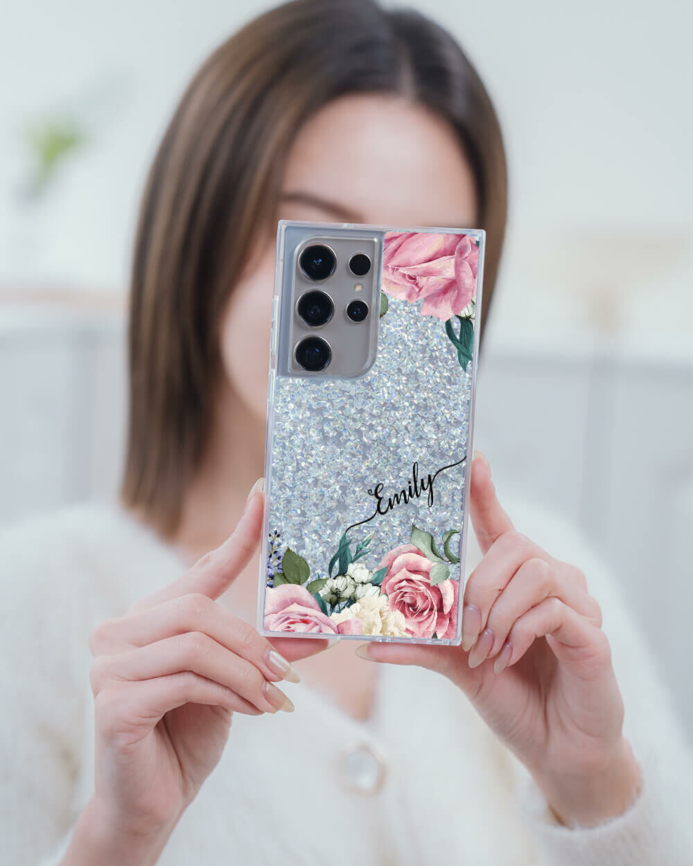 淡粉玫瑰 銀耀貝拉殼 - (訂製名字) - Samsung 三星 客製化手機殼