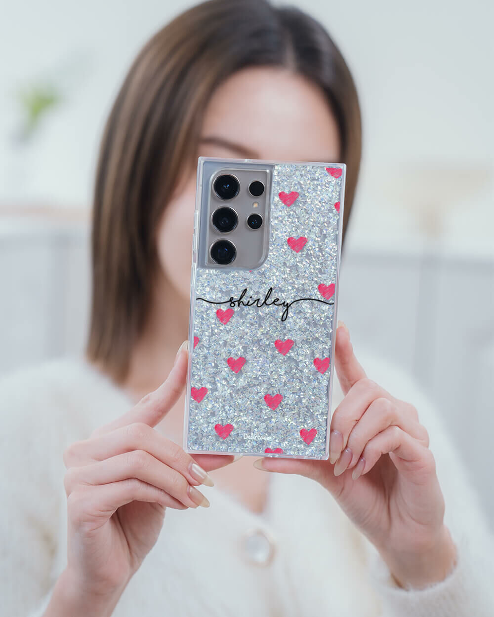 塗鴉愛心 銀耀貝拉殼 - (訂製名字) - Samsung 三星 客製化手機殼