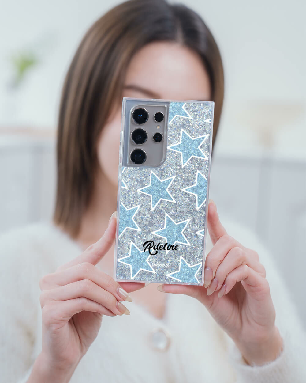 藍色星星 銀耀貝拉殼 - (訂製名字) - Samsung 三星 客製化手機殼