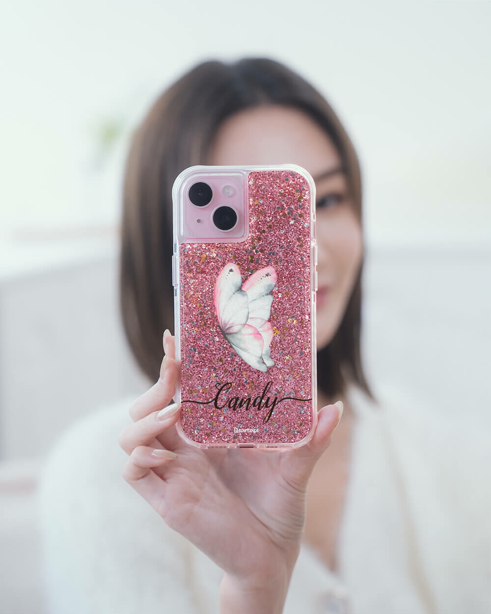 夢幻粉蝶 粉耀撞白殼 - (訂製名字) - iPhone 客製化手機殼