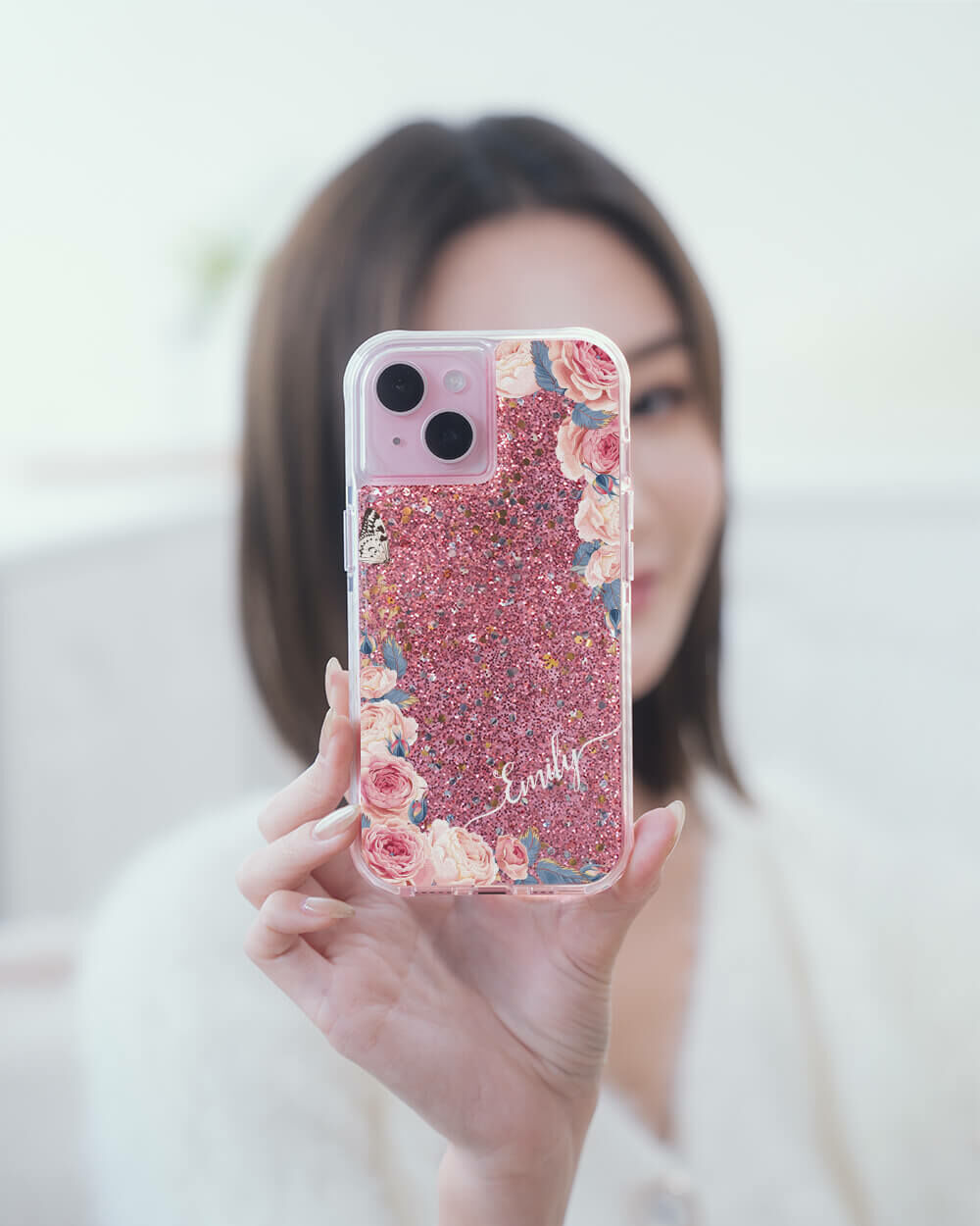 婚禮玫瑰 粉耀撞白殼 - (訂製名字) - iPhone 客製化手機殼
