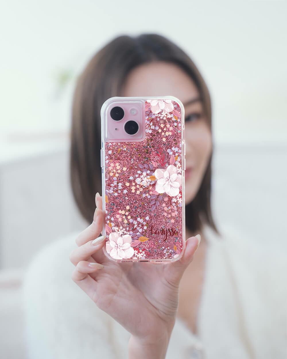 淡粉櫻花 粉耀撞白殼 - (訂製名字) - iPhone 客製化手機殼