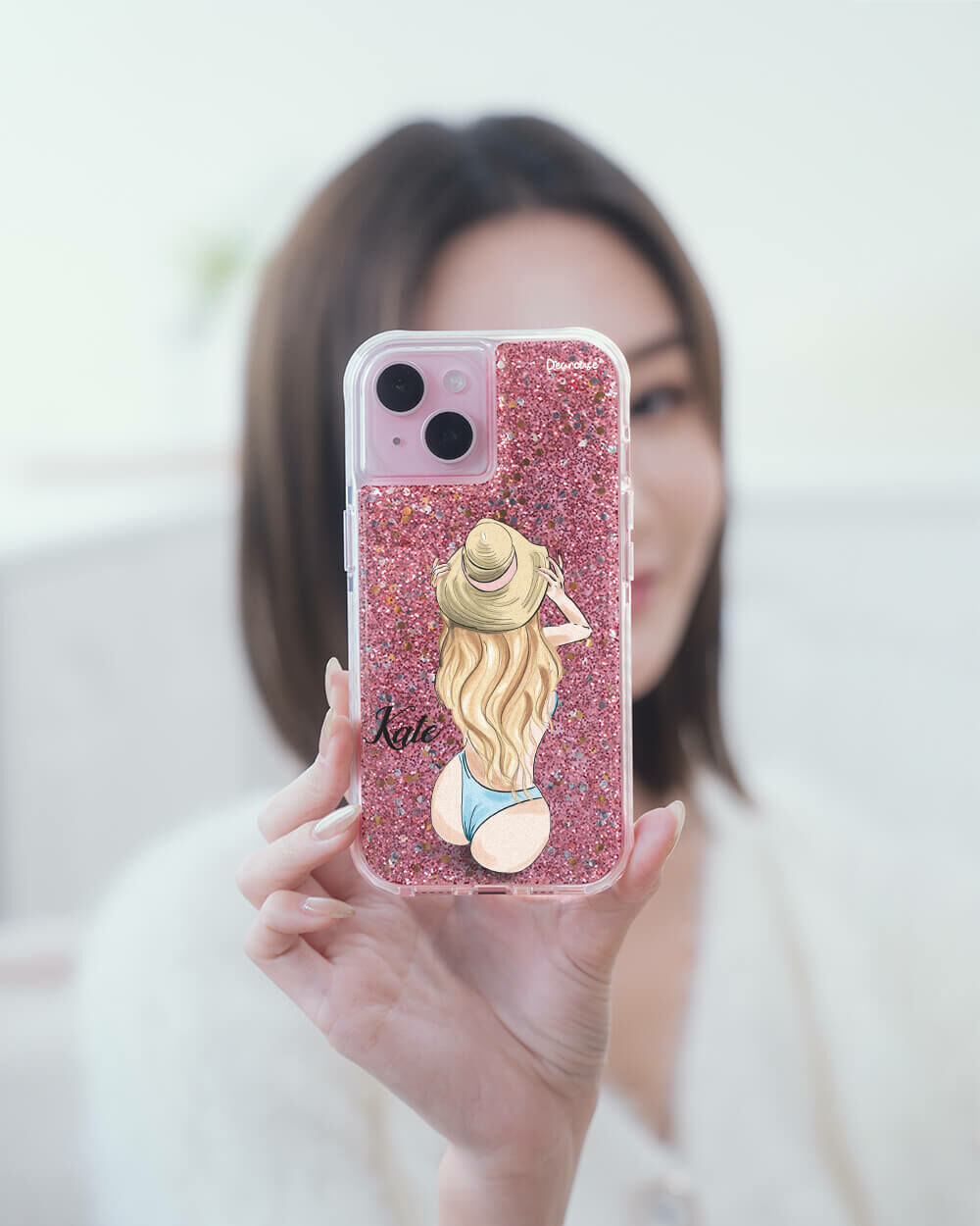 熱情女孩 粉耀撞白殼 - (訂製名字) - iPhone 客製化手機殼