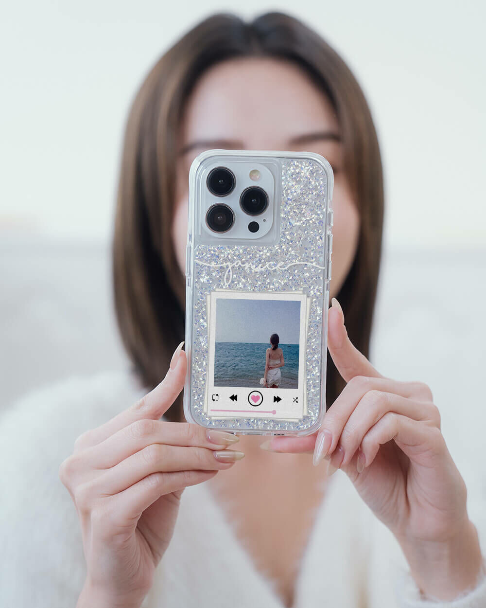 妳的美照 銀耀撞白殼 - (訂製名字) - iPhone 客製化手機殼