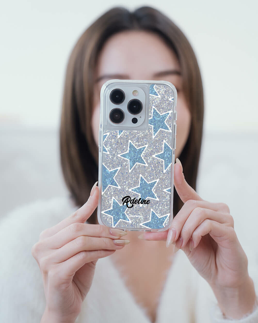 藍色星星 銀耀撞白殼 - (訂製名字) - iPhone 客製化手機殼