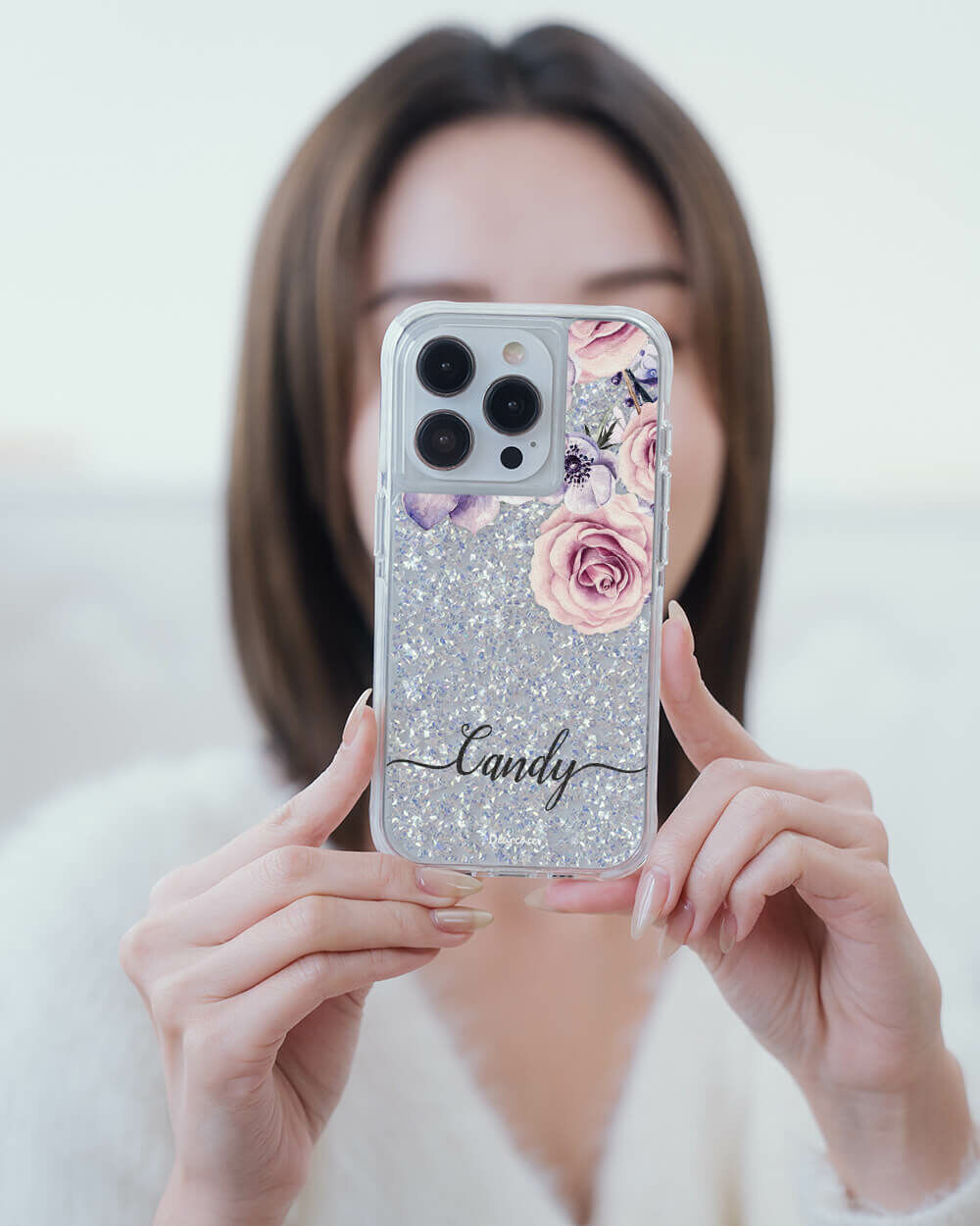 古典玫瑰 銀耀撞白殼 - (訂製名字) - iPhone 客製化手機殼