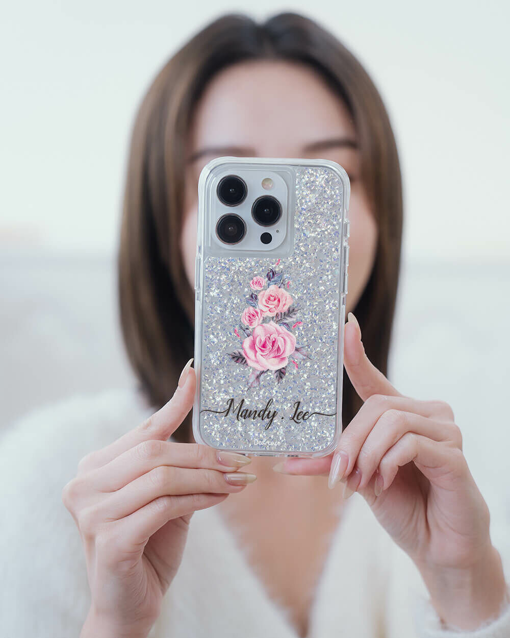 專情玫瑰 銀耀撞白殼 - (訂製名字) - iPhone 客製化手機殼