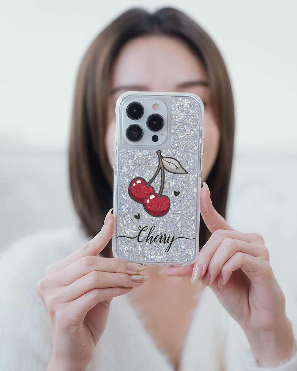 可愛小櫻 銀耀撞白殼 - (訂製名字) - iPhone 客製化手機殼
