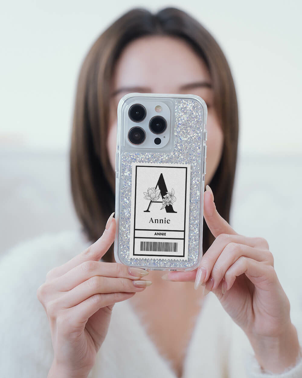 大字條碼 銀耀撞白殼 - (訂製名字) - iPhone 客製化手機殼