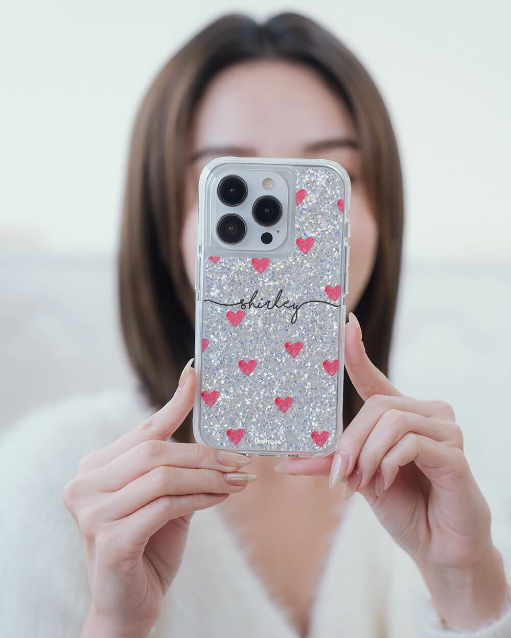 塗鴉愛心 銀耀撞白殼 - (訂製名字) - iPhone 客製化手機殼
