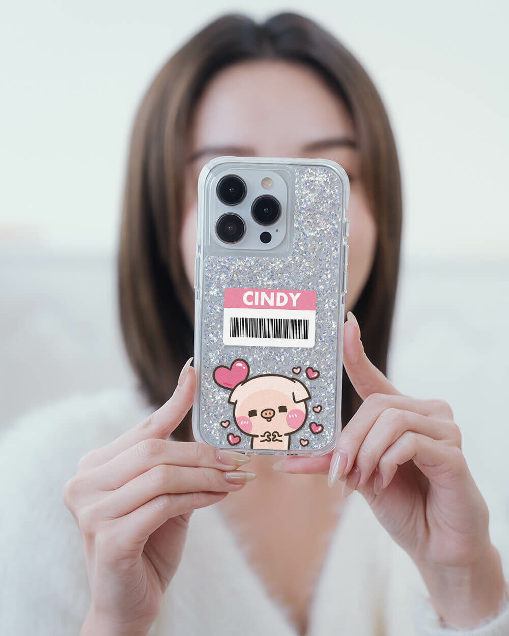 【插畫聯名】幸福肥萌萌豬 銀耀撞白殼 - (訂製名字) - iPhone 客製化手機殼
