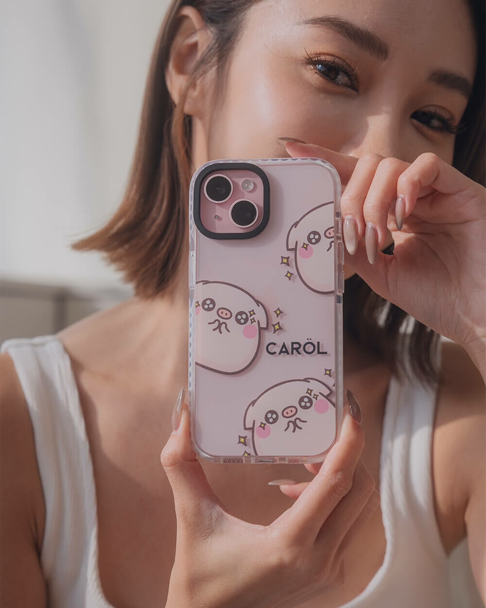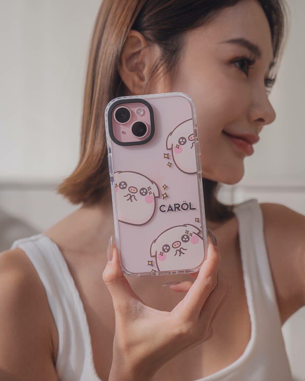 【插畫聯名】萌萌豬 我就圓滾滾 - (訂製名字) 防摔撞白殼 iPhone客製化手機殼