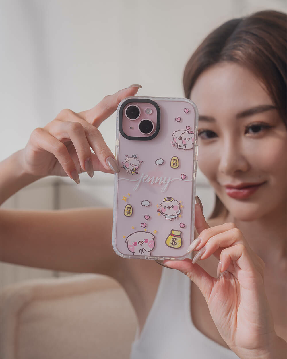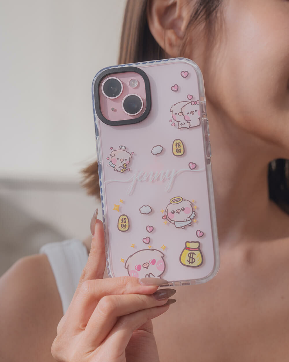 【插畫聯名】萌萌豬 滿滿萌萌豬 - (訂製名字) 防摔撞白殼 iPhone客製化手機殼