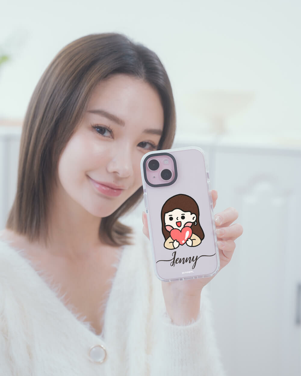 【插畫聯名】挖系小y - (訂製名字) 防摔撞白殼 iPhone客製化手機殼